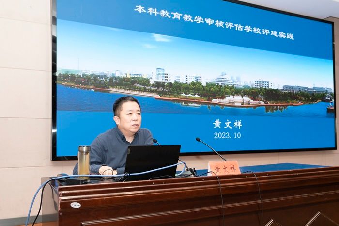 黄文祥以《本科教育教学审核评估学校评建实践》为题,从提高站位认识、把握指标精髓、组织评建要点等方面,以常熟理工学院为例,向大家分享了评建实践经验,并对第二类第二种类型高校的审核重点做了详细解读。他强调,评建过程中应把握新变化、适应新形势,突出重点的同时,更应提高质量、加强创新。