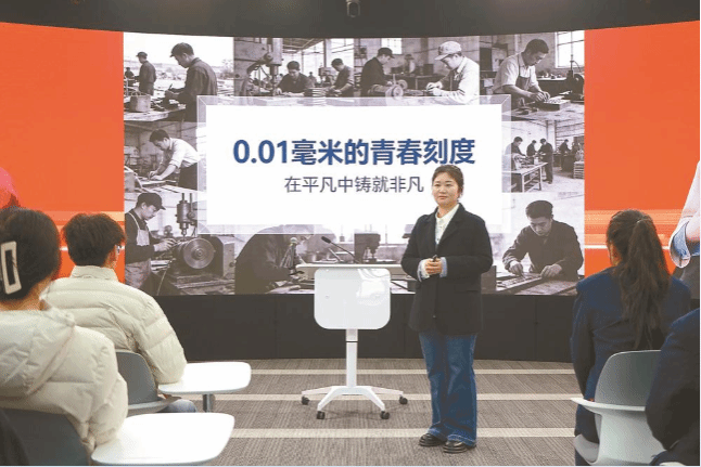 匠心启航,从兵工熔炉到时代匠魂。盐城工学院孙莉老师以“匠心向党,精工为民”为主题,带领学生从现代实验室走进烽火岁月中的兵工厂,串联起大中小学不同学段对“工匠精神”的理解路径。她深情讲述了“中国的保尔·柯察金”——吴运铎的传奇人生,阐释其不畏艰难、精益求精的精神内核。吴运铎在炮火中仍执着于毫米级精度的坚守,让在场学子深刻体悟:手工打磨不仅是对技艺的锤炼,更是对初心的守望、对时代的担当。这一教学环节通过大学教师引领、跨学段学生共听,实现了思想深度与情感温度的同频共振。