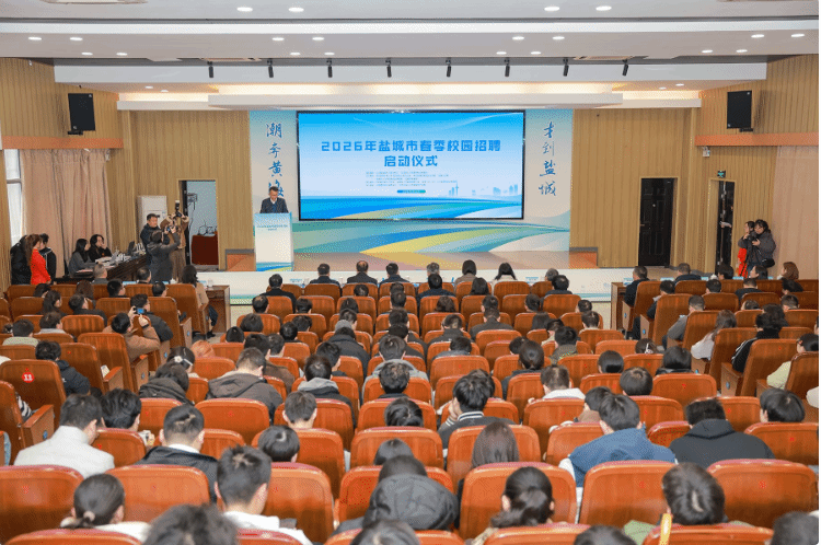 招聘活动当日,盐城市2026年春季校园招聘启动仪式在机械馆报告厅举办。倪一华主持活动。邢晓平出席并致辞。她表示,今年是“十五五”规划开局之年,在全国两会胜利闭幕之际,是国家深入实施就业优先战略的关键时期,本次招聘会暨春季校园招聘启动仪式在我校隆重举行,既是省、市两级贯彻落实全国两会精神、抓实高校毕业生就业工作的务实举措,更是对我校毕业生就业工作与学校事业发展的高度重视。她指出,盐城工学院作为驻盐理工类本科高校,始终秉持“扎根盐城、立足江苏、服务全国”的办学理念,坚持“校地协同、产教融合”的发展路径,紧扣盐城向海发展、建设海洋强市的战略需求,着力培养“留盐建功、爱盐奉献、建盐有为”的高素质应用型人才。她强调,作为盐城人才培养主阵地、科技创新生力军、“留盐行动”排头兵,学校将始终紧扣“盐城所需,盐工所能”,主动担当、精准发力,以更实举措、更优服务,为盐城高质量发展提供坚实人才支撑与强劲智力动能。