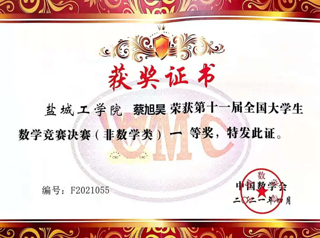 在本次比赛的非数学专业组里,有58人获一等奖,其中6人来自江苏高校,蔡旭昊和邱亮亮两位同学位列其中。我校非数学专业类一等奖获奖数与清华大学、上海交通大学等国内名校同时并列第三,在江苏高校中位列第一。这是我校参赛历史上的最好成绩,也是蔡旭昊本人的最高“战绩”。