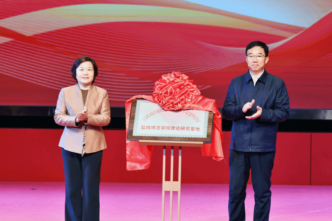 活动现场,陈卫红和戴斌荣共同为江苏省习近平新时代中国特色社会主义思想研究中心盐城师范学院研究基地揭牌。