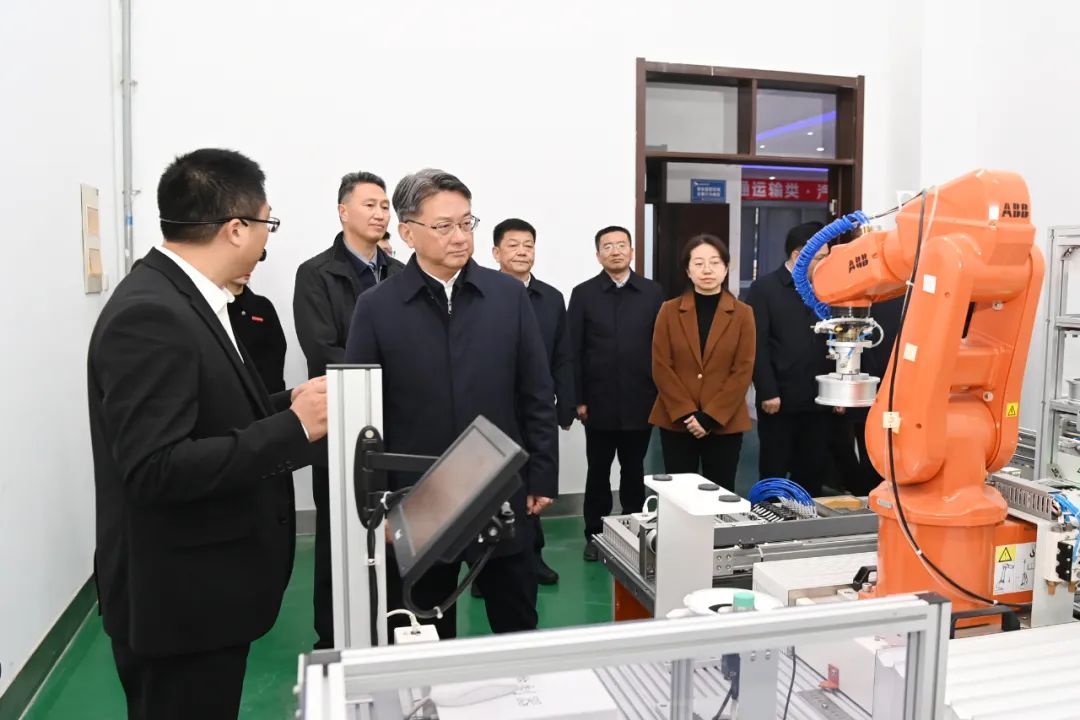盐城工学院整合全校创新资源,深入推进重点学科、科研平台和专业实践基地建设。周斌来到该校江苏省模具智能制造工程技术研究中心和国家电投海上风电技术中心江苏分中心,认真察看智能制造示范生产线、数字孪生与智能制造技术、海上风电仿真教室实验室等项目,同教学科研人员深入交流,详细了解技术研发、产学研对接、成果转化等情况。在随后召开的座谈会上,围绕促进产学研融合、深化合作共建等方面深入探讨。周斌指出,新质生产力是以新产业为主导的生产力,特点是创新,关键在质优,本质是先进生产力。希望学校立足盐城,将学科发展、专业建设和人才培养与盐城产业发展紧密结合;立足自身,推进高等教育改革创新,提升学科竞争力;立足特色,大力推动产学研深度合作,不断提高科技成果转化和产业化水平;努力拼搏,加快建设一流应用型大学,在赋能支撑盐城新质生产力发展上形成更多标志性示范性成果。
