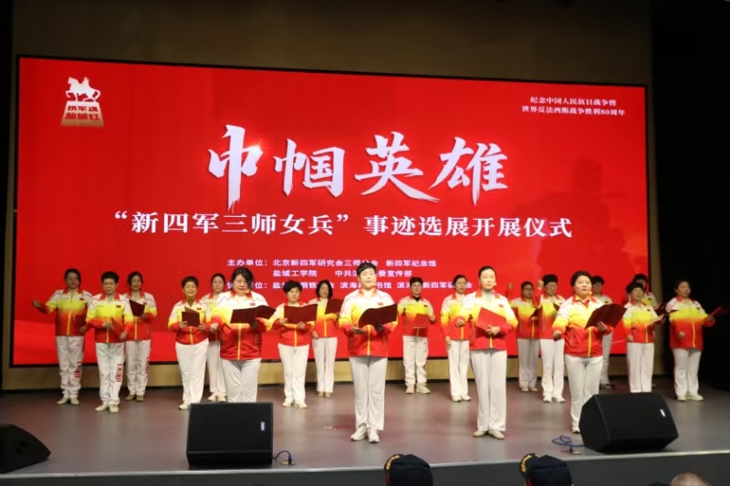 开展仪式上,盐城市钢铁商会妇联20位女同胞朗诵原创诗词《雄师女兵》;盐城市文广旅局副局长、新四军纪念馆馆长仇金标致辞;盐城工学院党委常委、宣传部长奚新国和中共滨海县委宣传部王爱军主任发言;新四军纪念馆讲解员陈风亮及潘晨霞、颜娜、陈惠敏、吕奕霏分别进行红色故事《一块石头的自述》宣讲和红色情景剧《永不逝去的芳华》展演;新四军三师参谋长彭雄、吴为真夫妇后人何志坚向新四军纪念馆捐赠彭雄烈士文物;北京新四军研究会三师分会副会长晁立华致答谢辞;新四军三师师长黄克诚之子黄煦、奚新国、仇金标、王爱军、滨海县新四军研究会会长徐振理登台共同启动开展。随后大家参观“新四军三师女兵”事迹展,北京、上海、镇江、无锡、盐城、滨海新四军后人及滨海县新四军研究会志愿者等100余人参加首展。