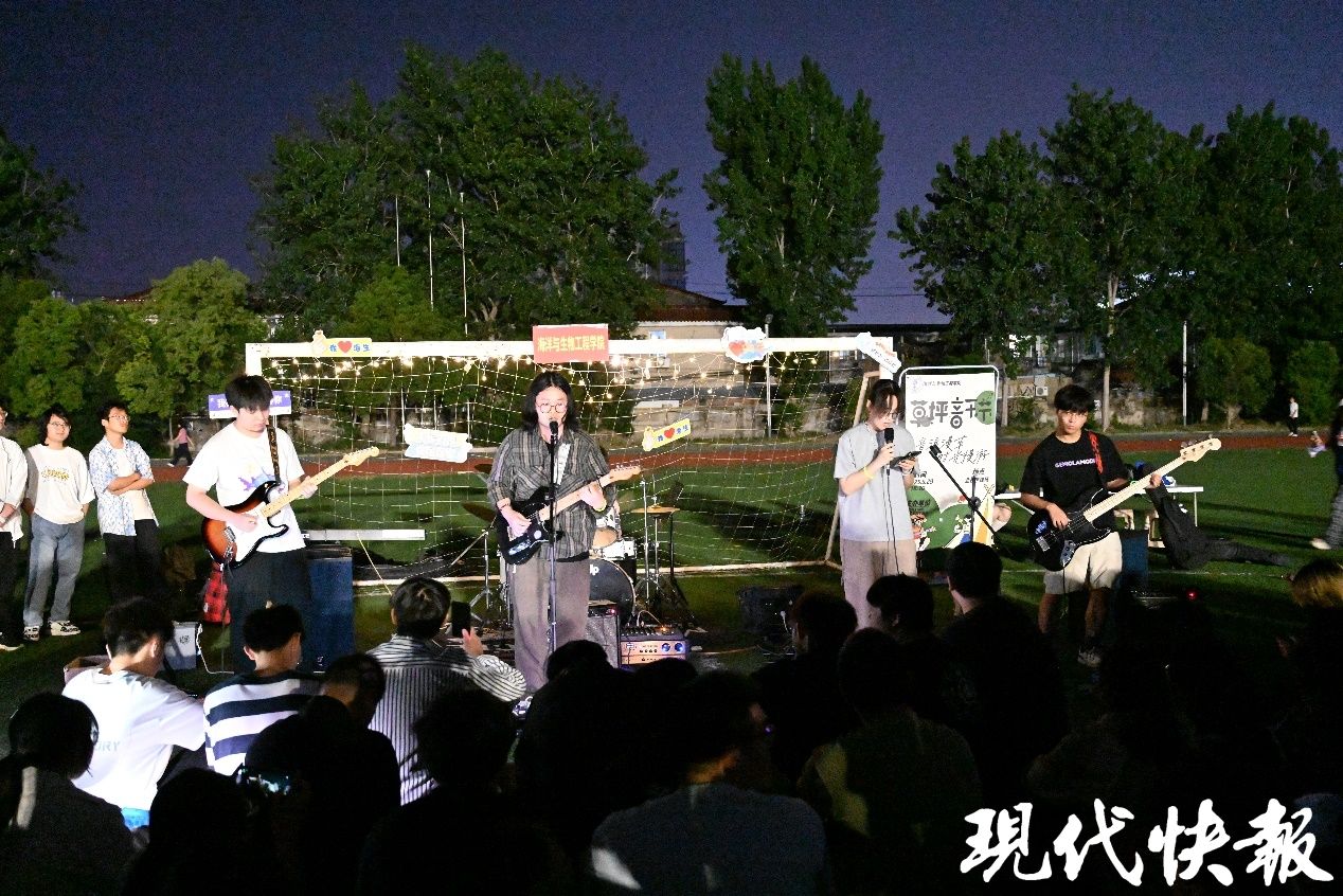 5月29日,盐城工学院海洋与生物工程学院“音浪漫草,时光漫游”草坪音乐节暨毕业季跳蚤市场活动在该校足球场温情上演,数千名师生共赴这场夏夜青春之约。