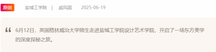 盐城工学院润美楼创意与设计实验中心内,木刻刀与漆刷共舞,油墨香与大漆味交融。6月12日,一场跨越国界的艺术对话在此展开——英国格林威治大学师生走进设计艺术学院,在版画拓印的刀痕墨韵与漆扇髹饰的流光溢彩中,开启了一场东方美学的深度探秘之旅。