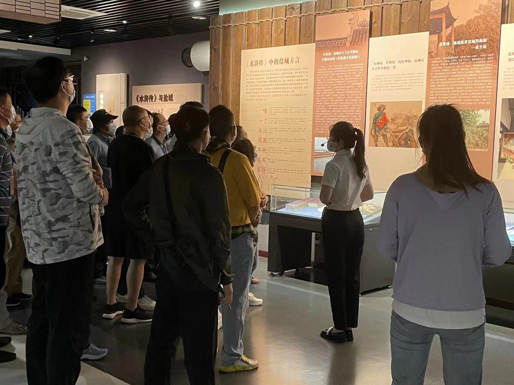 游客在盐城市水浒文化博物馆参观。市水浒文化博物馆围绕一本书、三个人、一座城进行陈列,一本书是《水浒传》,三个人是施耐庵、张士诚、罗贯中,一座城是盐城。盐城不但是施耐庵的家乡,也是《水浒传》这部作品的诞生地。市水浒文化博物馆兼盐都区博物馆馆长、党支部书记苏万才介绍,该馆年均接待团体300多个,接待人次约32万人次。