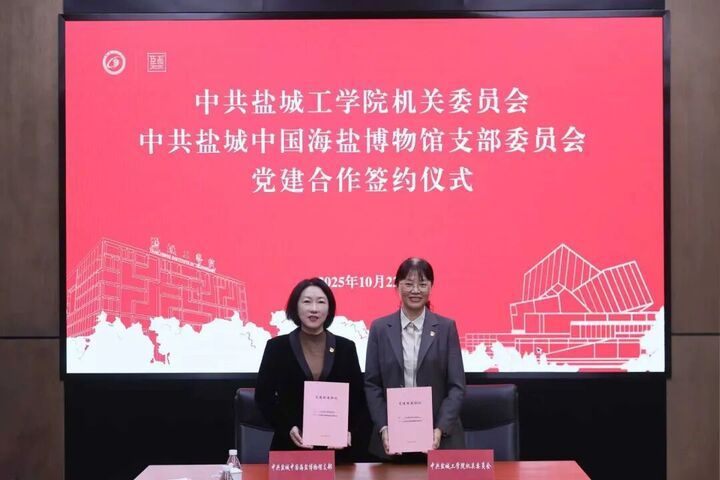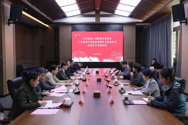 为积极探索新时代党建工作新思路、新模式,进一步加强馆校合作,推动资源共享、优势互补。2025年10月22日下午,中共盐城中国海盐博物馆支部委员会与中共盐城工学院机关委员会在盐城市博物馆会议室成功举行党建共建活动。双方通过深入交流、签署协议、专题党课等形式,共同开启了馆校党建协同发展的新篇章。盐城工学院机关党委书记沈晓梅主持本次活动。中国海盐博物馆馆长朱海燕、副馆长黄明慧,盐城工学院机关党委委员、工会主席徐新华等双方相关负责同志出席活动。