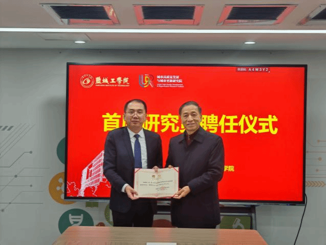 为深入贯彻落实国家关于持续推进城市更新行动、推动城市结构优化与品质提升的战略部署,进一步提升学校服务地方城市发展的能力,12月4日下午,盐城工学院城市高质量发展与城市更新研究院首席研究员聘任仪式在西伏河产学研协同创新中心举行,聘任盐城市政府原副秘书长、盐城工学院客座教授张亚钊与盐城市口岸办原主任朱杰为首席研究员。副校长、盐城市政协副主席丁成出席。仪式由土木工程学院院长王照宇主持。