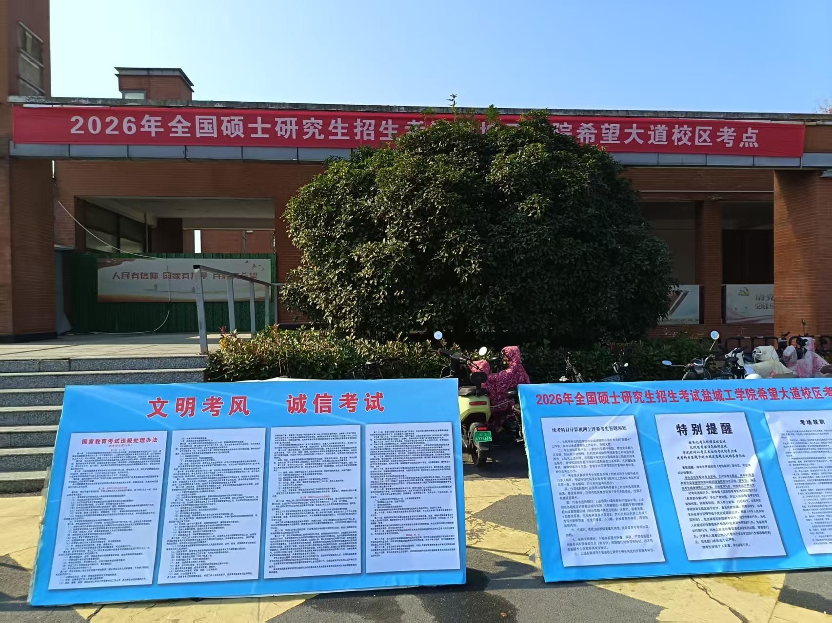 12月20-21日,2026年全国硕士研究生招生考试盐城工学院考点各项工作圆满完成。盐城工学院考点共设置90个考场,考生2700人。学校积极践行“平安研考”“阳光研考”“舒心研考”,党委书记周如军,党委副书记、校长邵荣,党委常委、纪委书记、省监委派驻盐城工学院监察专员陈伟多次在学校会议上强调,要高度重视、周密组织,全力以赴确保研究生考试安全有序。