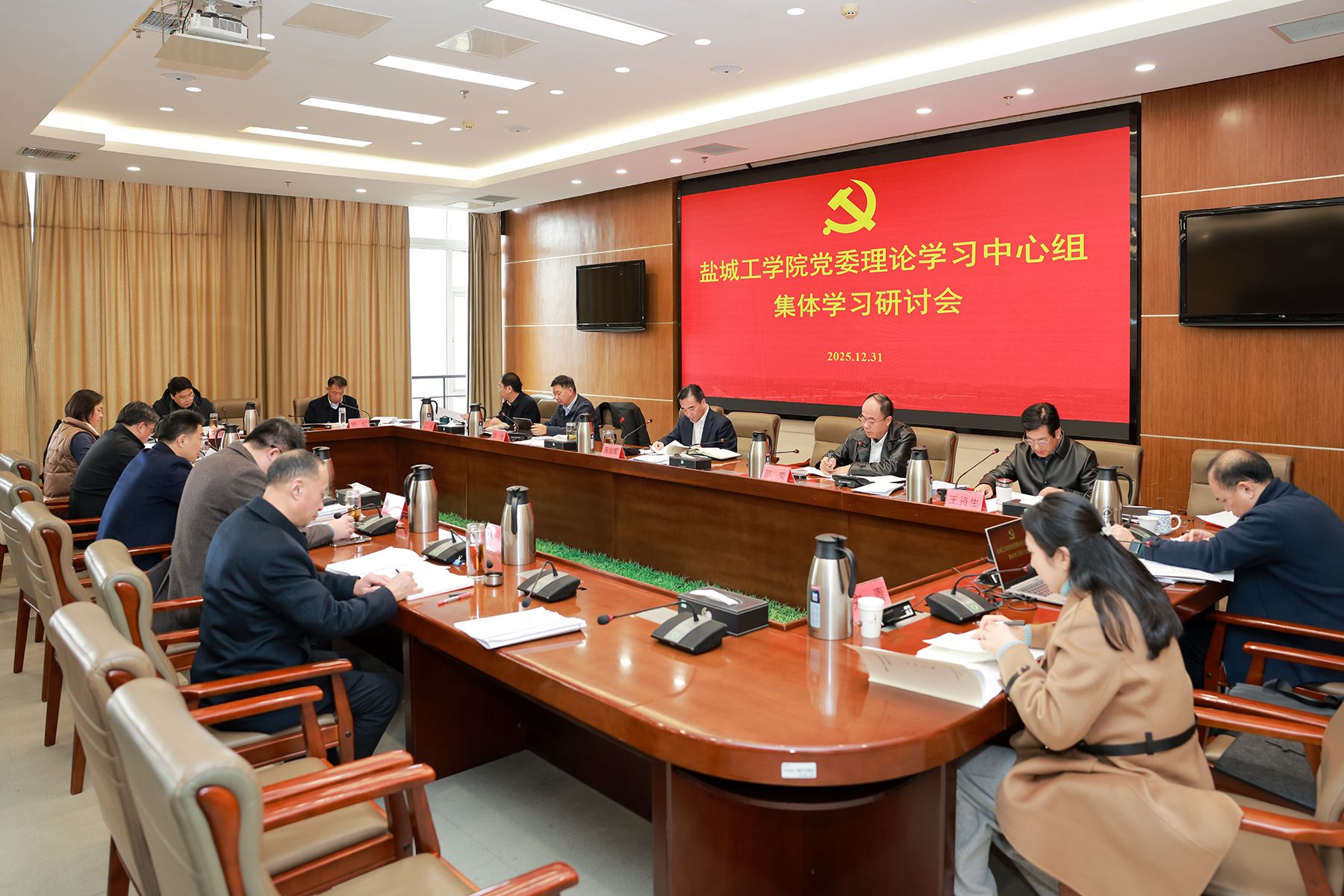12月31日上午,在希望大道校区行政楼9楼视频会议室,校党委理论学习中心组举行集体学习研讨会,围绕习近平总书记在12月25日中共中央政治局会议上的重要讲话精神、《中国共产党思想政治工作条例》《教育强国建设规划纲要(2024—2035年)》等内容开展集体交流研讨。