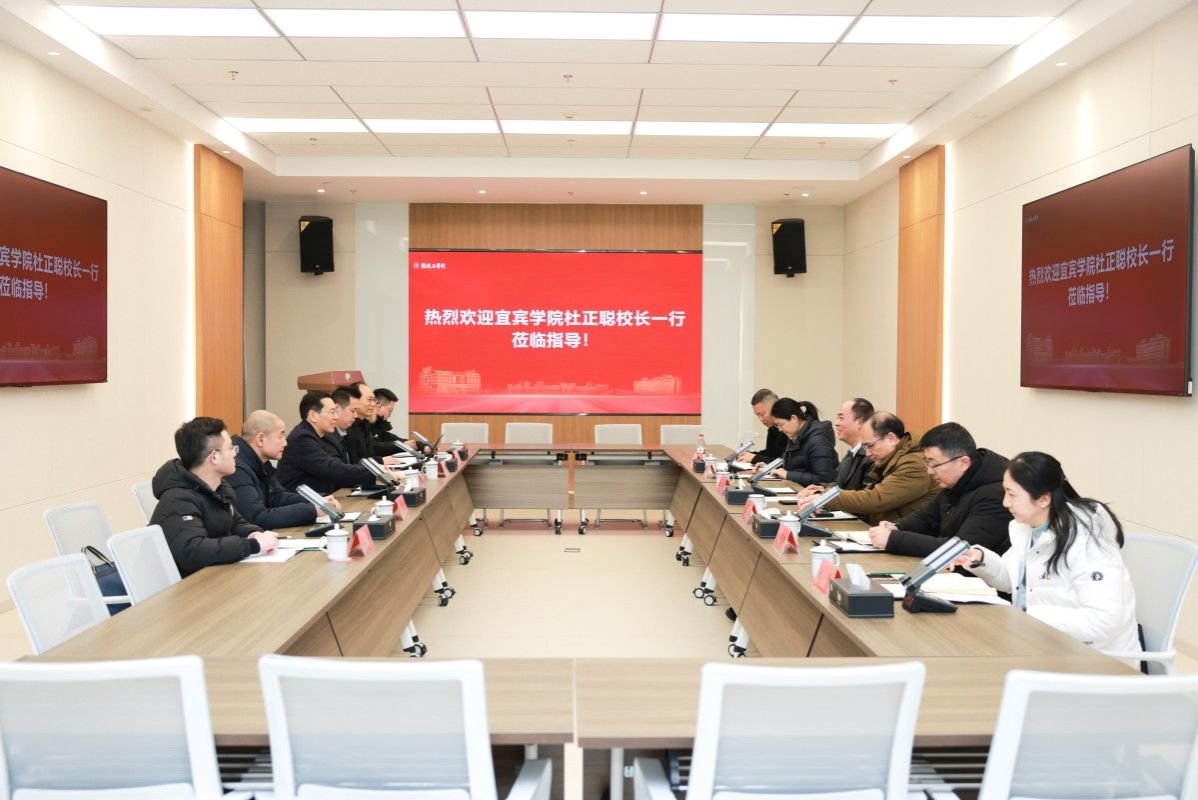 1月21日下午,宜宾学院校长、党委副书记杜正聪一行来校调研交流。我校校长、党委副书记邵荣热情接待。