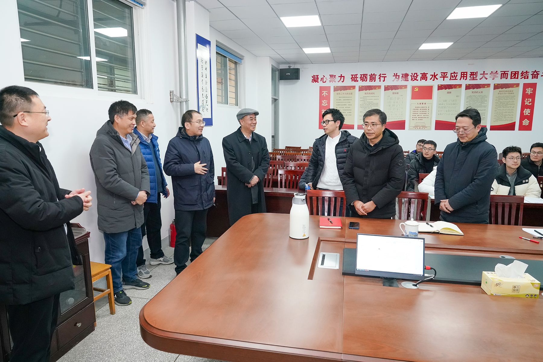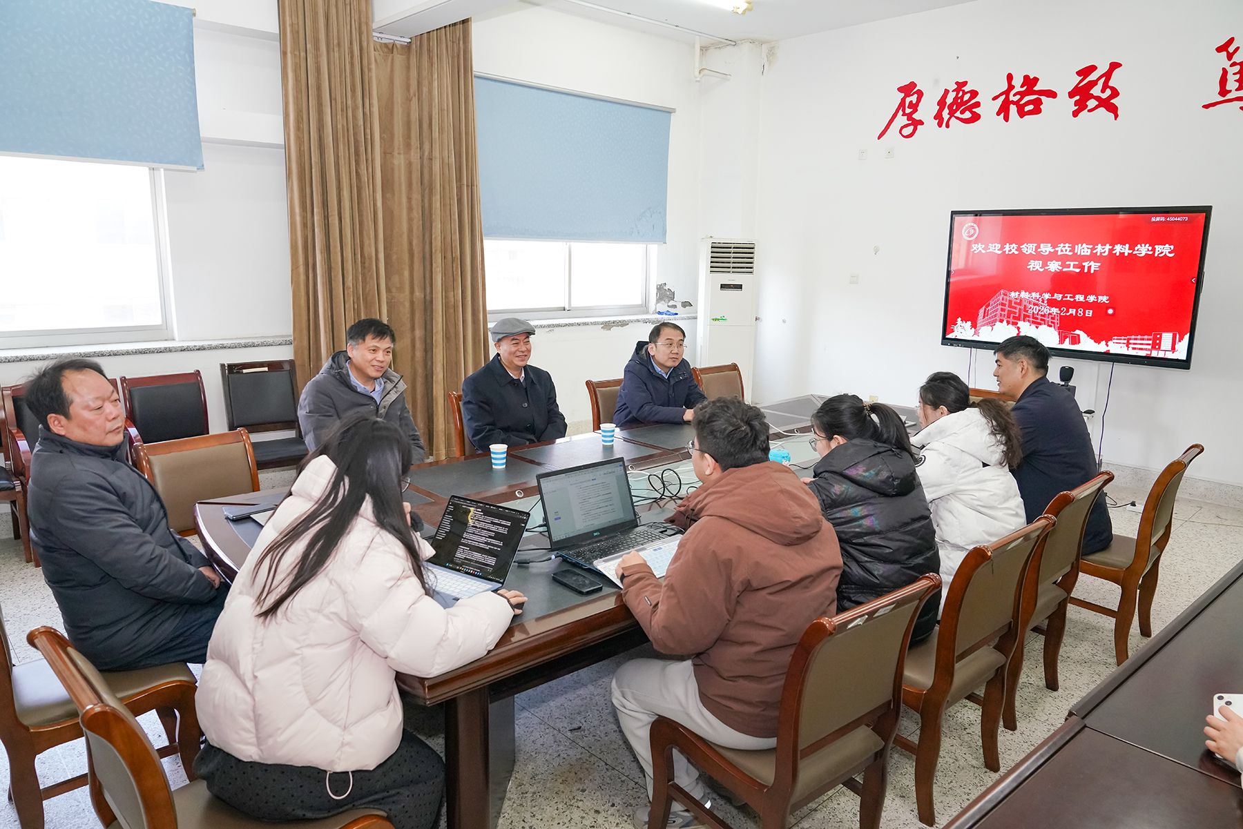 2月8日下午,党委副书记、校长邵荣深入各“理工类”二级学院科研一线,专题调研指导我校2026年度国家自然科学基金(以下简称“国基”)项目申报工作。副校长、市政协副主席丁成陪同,科技处、各“理工类”二级学院相关负责人参加。