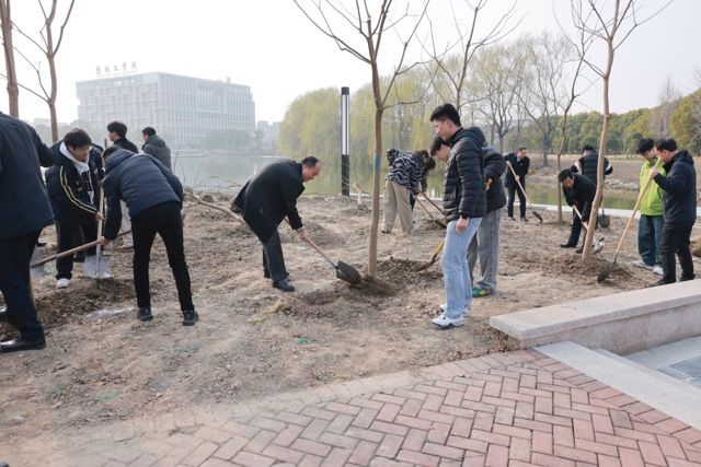 活动现场,大家分工协作、井然有序,扶苗、培土、踩实、浇水,每一道工序都一丝不苟。春日暖阳下,新栽的乌桕树苗亭亭挺立,枝丫舒展,既预示着未来枝繁叶茂的生长潜力,也象征着盐工精神代代相传的鲜活力量。新苗后续将由学校安排专业力量悉心管护,确保茁壮成长,成为校园绿色生态中一道持久的风景线。