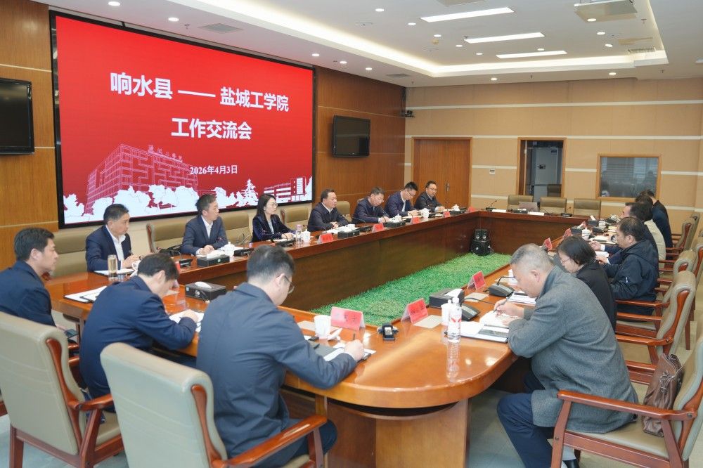 4月3日下午,响水县委书记郭超、副县长张明、副县长周婧苏等一行10人来校推进交流合作。工作交流会在希望大道校区行政楼9楼会议室举行,党委书记周如军,副校长、盐城市政协副主席丁成,党委常委、副校长邢晓平,党委常委、组织部部长包雅玮出席。