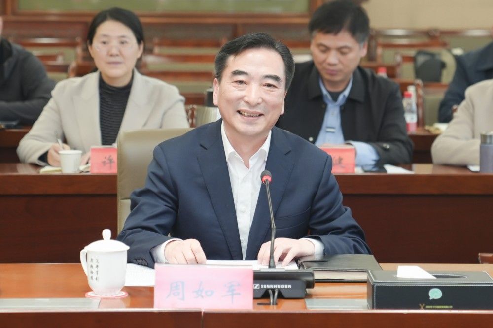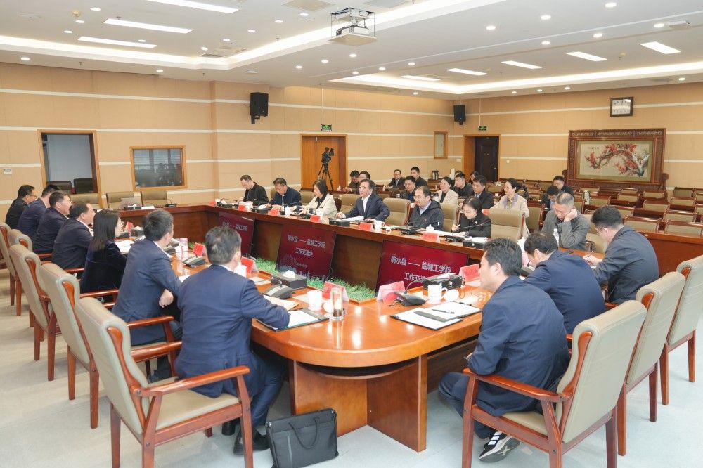 周如军对郭超一行的到访表示热烈欢迎,并从办学历程、学科建设、师资队伍、科研创新等方面介绍了学校基本情况。他指出,学校始终坚持开放办学、服务社会的办学定位,积极对接区域产业需求,深化产教融合、校企合作,努力为地方高质量发展提供人才支撑和智力支持。响水县作为苏北地区重要的工业基地,产业特色鲜明,创新要素集聚,与我校的学科专业布局高度契合,合作空间广阔、潜力巨大。他希望以此次交流为起点,找准双方在发展战略、人才引育、科技创新、为民造福等方面的结合点,想响水所需,尽盐工所能,积极探索“双高协同”发展模式,加快培育和形成新质生产力,促进教育、科技、人才一体化发展,为助推响水县经济社会高质量发展贡献盐工智慧和力量。