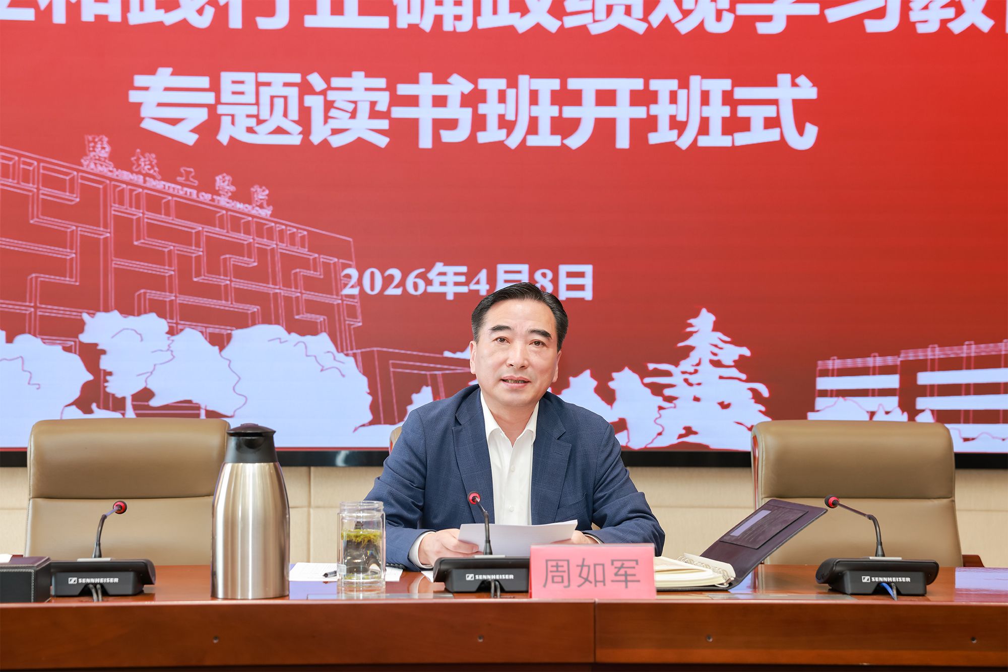 周如军作开班动员报告。他指出,开展树立和践行正确政绩观学习教育,是今年党的建设的重要任务。举办专题读书班,主要任务是原原本本、逐字逐句研读《习近平关于树立和践行正确政绩观论述摘编》,深刻领会其核心要义与实践要求。他强调,领导干部作为“关键少数”,要以上率下,在深学细悟中筑牢思想根基;要围绕学校中心工作、结合实际,在破解难题中找准发展路径;要坚持统筹推进、务求实效,在知行合一中交出满意答卷。他要求,广大党员干部要以学习教育为契机,科学谋划学校高质量发展“怎么办、如何干”的实践路径,为“锚定两件大事、奋力开创新局”、加快建设一流应用型大学提供坚实保障。