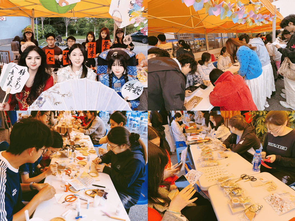 开幕式后,春日游园会火热开启。活动设置手工DIY与环校园打卡两大板块,融传统文化体验、趣味互动闯关于一体,吸引同学们踊跃参与。