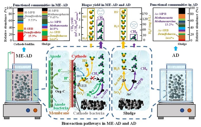 论文中,远野首次提出利用电化学方法解决厌氧消化面临的硫化氢毒性抑制难题,阐明了电化学-厌氧消化(ME-AD process)耦合体系中硫转化路径及产甲烷增效机制。他所提出的ME-AD工艺既可解决硫化氢毒性抑制又可增效产甲烷。该工艺甲烷产出经济效益是电能输入成本的20倍,可取代传统投加碱性药剂控制硫化氢毒性的方法。技术可原位产生碱度,无二次污染,适用性强,可运用于多种类型的厌氧消耗工艺,技术模式具备较强的推广性。近年化学药剂价格不断攀升,该工艺还极具经济优势。