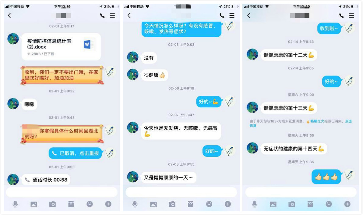 我在湖北咸宁,最近十几天我都在家里自我隔离,每天都关注着疫情的变化,全国各地人民都在努力行动,积极响应国家的号召。疫情刚开始时我心里还有点担心,但是在这二十几天的时间内,老师会定期地给我打电话,了解我的健康状况并帮助我积极调整心态,我深受感动。学院老师的关怀给了我信心,相信这次疫情绝对会好转。