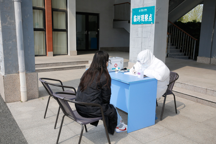 演练采取情景模拟和现场演练相结合的方式,根据返校报到过程中的重点环节和风险点、防控点进行了演练,由政工人员扮演“学生”和“志愿者”。演练分为两部分内容,一是报到日学生返校工作流程演练,包括学生乘坐私家车正常返校、未按学校要求提前返校、学生体温异常等情景;二是学生返校后应急处置现场演练,包括应急处置现场疫情的信息处理、复测体温并问诊、护送至医院发热门诊、隔离观察、确诊及疑似病例的处置等环节。