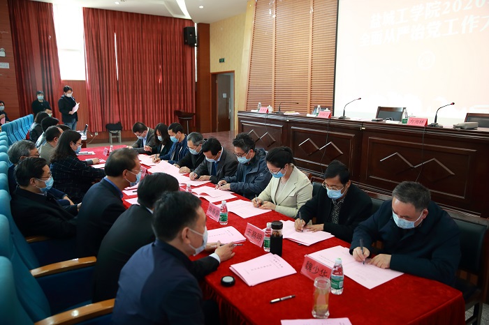 会上,与会人员集中观看了警示教育片《必须坚守共产党人“赶考”初心》。校领导班子成员,校领导与与分管部门代表、联系教学单位代表签订了2020年全面从严治党目标责任书;校领导与分管部门、联系教学单位代表签订意识形态和政治安全工作责任书、2020年安全稳定工作责任状;校领导与所联系的教学、科研单位签订2020年度工作目标任务书。