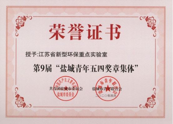 江苏省新型环保重点实验室获“盐城青年五四奖章集体”称号