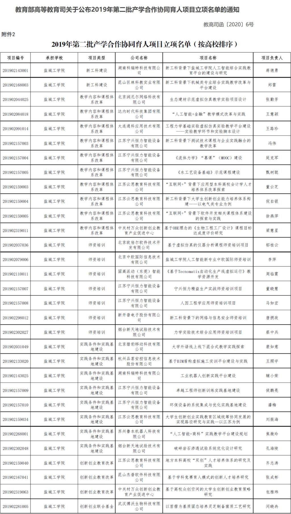 6月5日,教育部高教司公布2019年第二批产学合作协同育人项目立项名单,盐城工学院“新工科背景下盐城工学院人工智能综合实践教育平台的建设与研究”等31个项目获批立项,立项数量名列全国第46位。这是2017年以来我校获批数量最多的一次。本次我校获批立项的项目中,创新创业教育改革3个、新工科建设2个、实践条件和实践基地建设8个、创新创业联合基金1个、教学内容和课程体系改革10个、师资培训7个。截止目前,我校共获批教育部产学合作协同育人项目97项。本次多个项目获批,是我校积极作为,在推进产教融合、深化校企协同育人方面取得的新的阶段性成效。