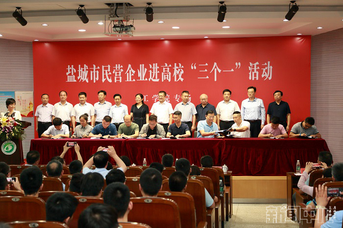 7月14日下午,盐城市民营企业进高校“三个一”活动(一场创业创新分享会、一场企业人才招聘会和一场校企产学研对接会)工学院专场在我校南校区土木工程馆一楼报告厅成功举办。江苏省工商联党组成员、省工商联副主席郭东升出席并讲话,市委常委、组织部部长、统战部部长柏长岭致辞。市政协副主席、市工商联主席吕拔生,我校校长方海林,校党委副书记薛浩,校党委常委、副校长邵荣、王路明,校党委常委、统战部部长姚军,各县(市、区)有关部门负责人,企业家代表,我校相关职能部门、二级学院党政负责同志,部分师生参加了本次活动。本次活动由市委统战部副部长、市工商联党组书记陈湘珍主持。