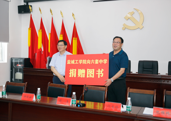党委常委、组织部部长倪自银代表师生向响水县六套中学捐赠图书