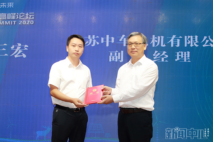 校党委书记刘祖汉向江苏省产业教授、江苏中车电机有限公司副总经理车三宏颁发聘书