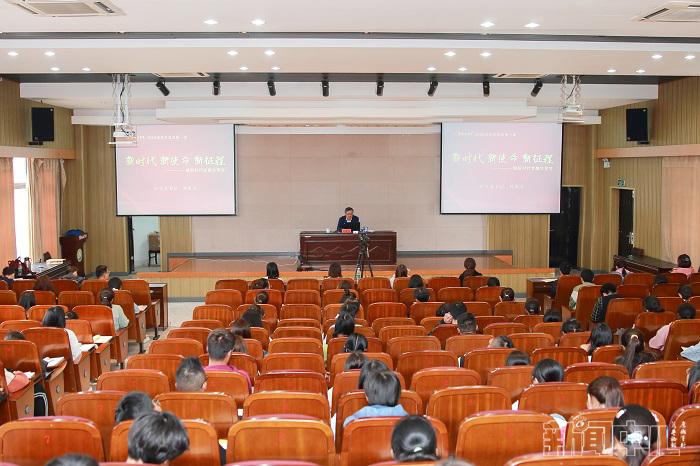 10月5日下午,在南校区机械馆报告厅,校党委书记刘祖汉走进2020级新生课堂,为同学们上《思想道德修养与法律基础》课程,开启了2020级新生的思政第一课。