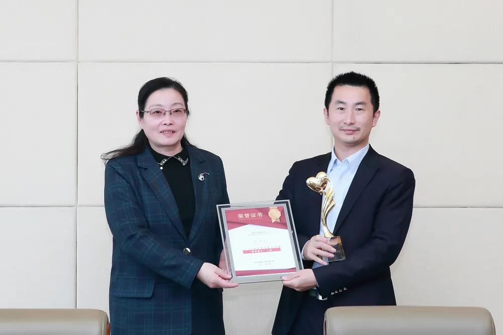 党委常委、纪委书记、省监委派驻监察专员陈春雷为周培恩经理颁发奖杯和证书