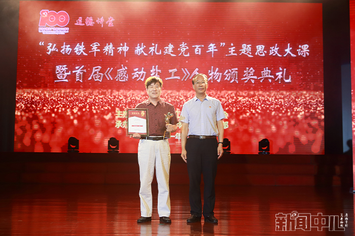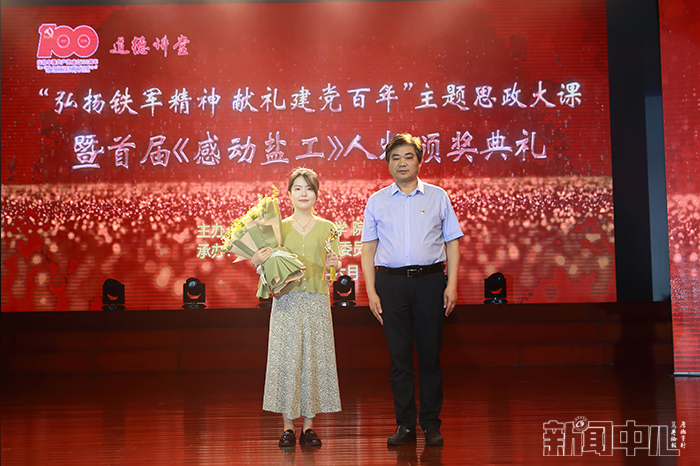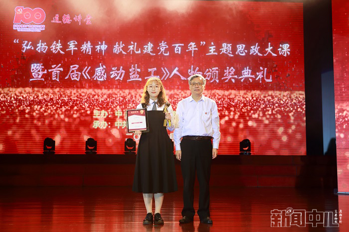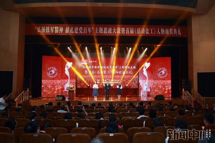 6月23日下午4点,在行政楼报告厅,由学校党委宣传部承办的“弘扬铁军精神,献礼建党百年”主题思政大课暨首届“感动盐工”人物颁奖典礼隆重举行。校党委书记刘祖汉,党委副书记、校长方海林,党委副书记薛浩,党委常委、副校长邵荣,党委常委、纪委书记、省监委派驻监察专员陈春雷,党委常委、副校长宋长春、王资生、魏少华,江苏省志愿服务联合会副会长、盐城市委宣传部二级调研员陈中才等领导出席典礼并分别为“感动盐工”人物当选者颁发奖杯和证书。