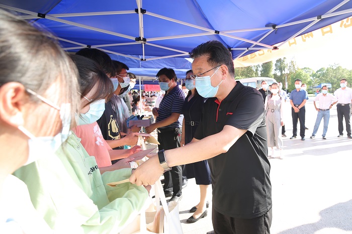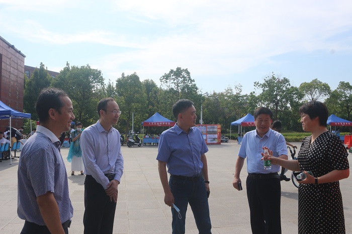 校领导到迎新现场看望报到新生,慰问服务在迎新一线的教职工和学生志愿者 刘涛 摄