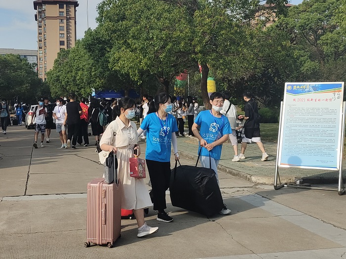 为了做好疫情防控常态化形势下的迎新工作,学校统筹协调、精心部署,科学制定迎新工作方案,从严从紧抓好防控工作。各学院和相关职能部门相互配合、通力合作。新生入学前,学校通过“学工在线”微信平台等发布《致2021级新生的一封信》,内容涵盖报到地址、报到流程和防护指引,帮助新生了解学校的基本情况、报到的基本流程和疫情防控知识。报到当日,学校设置学生报到专用通道,学生经过监测体温、核验身份、扫健康码后到所在二级学院迎新点进行报到。学校安排汽车接站,各学院安排学生志愿者全程引领,实行“一对一”精准迎新服务。学校还为家庭经济贫困的同学采取一系列特色资助措施,不让一名大学生因为家庭困难而辍学。报到后,各二级学院党政领导深入学生宿舍看望学生,关心大家进校后的感受以及饮食、生活等方面的情况,对新生关心的问题给予答复。10月5日-6日,学校还将组织所有新生进行核酸检测。