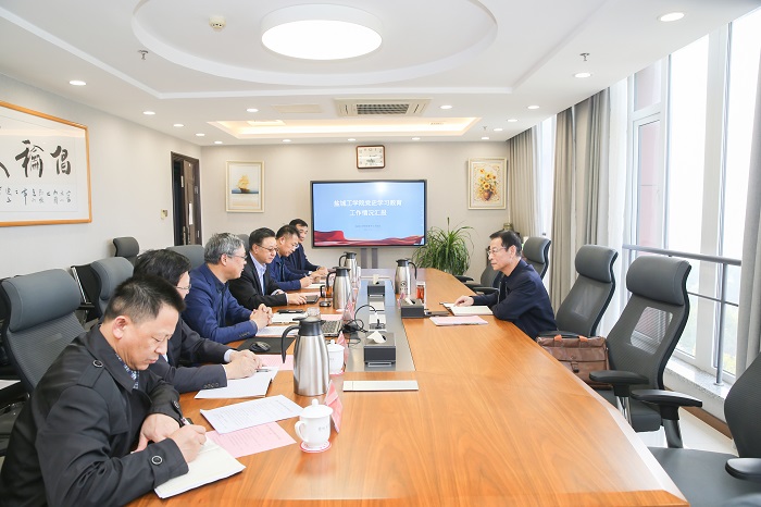 10月27日下午,省委教育工委党史学习教育派出第五指导组副组长、徐州医科大学原党委副书记、副校长赵世鸿,成员徐岚、陈硕一行来我校调研指导党史学习教育。校党委书记、校党史学习教育领导小组组长刘祖汉汇报我校党史学习教育工作情况。校党委副书记薛浩,党委常委、副校长宋长春,党委常委、组织部部长倪自银,党委办公室主任顾红,后勤保障集团党委书记、总经理张兵等陪同调研。薛浩主持工作汇报会。
