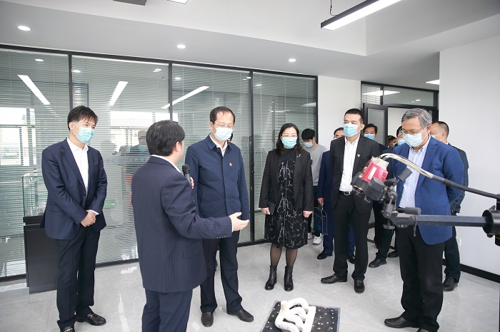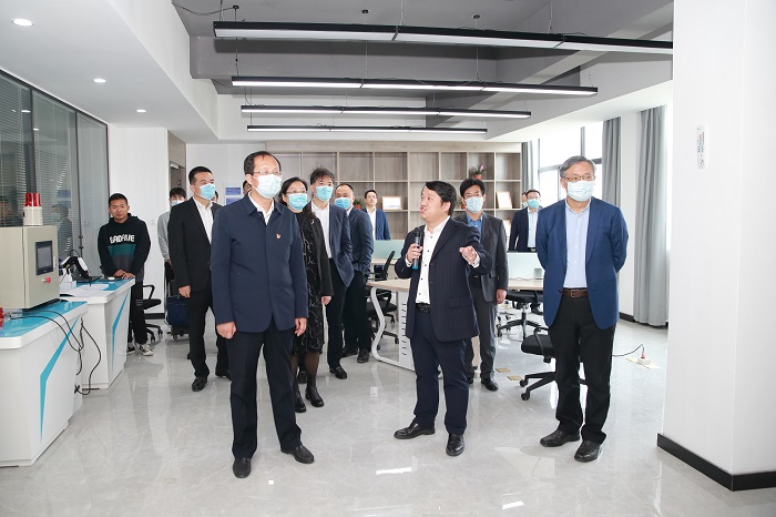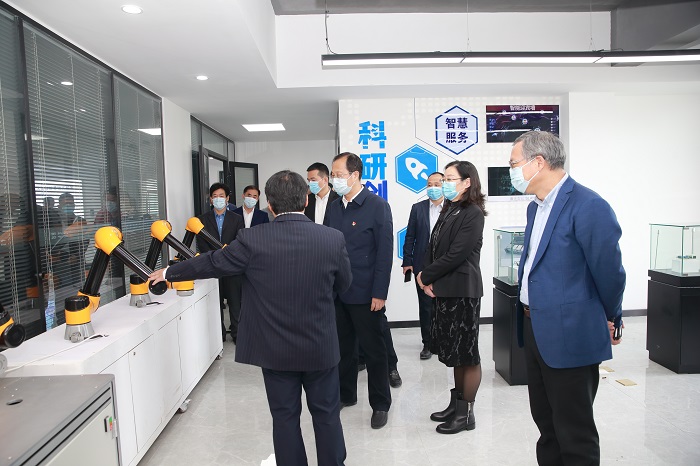 仪式后,刘祖汉、方海林陪同盐南高新区领导考察西伏河人工智能学院建设情况,参观人工智能基础实验室、创新实验室、机器视觉实验室、智慧语音实验室和研究生工作室,了解学生学习生活情况。
