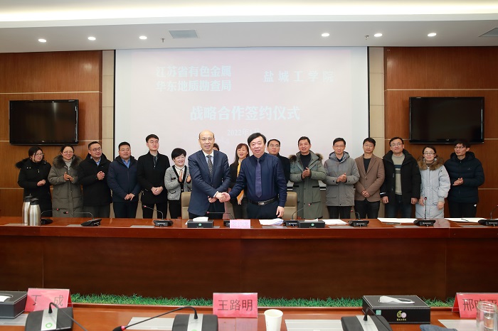 1月12日上午,在南校区行政楼九楼会议室,我校与江苏省有色金属华东地质勘查局签订战略合作框架协议。江苏省自然资源厅二级巡视员黄克蓉,江苏省有色金属华东地质勘查局副局长余新明,我校党委常委、副校长王路明出席。江苏省有色金属华东地质勘查局地球化学勘查与海洋地质调查研究院副院长闫玉茹、综合办主任吴敏、海洋所所长张刚、高工万凯超,我校科技处处长丁成、研究生院院长邢晓平、环境学院党总支书记陈阳以及环境学院教师代表等参加签约仪式。