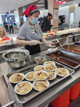 在饮食服务方面,为保障留校师生的就餐需求,从其他服务中心征调人员,并对接师生党员突击队、青年团员突击队充实后勤非核心岗位。各餐厅安装就餐隔板,鼓励“线上点餐、打包带走”的就餐方式,做到人员进出口分离,所有餐厅服务人员每日测温上岗,全程佩戴口罩。为了在校园疫情防控严格管理中增加学生的幸福感,推出连续10天左右的特价菜活动,稳定物价、丰富菜品,满足不同地区学生的不同口味,让学生吃的舒心,得到实惠,同时通过分时段供应,引导学生错峰、错时、错位就餐,并面向全体学生免费发放2.1万多张10元战“疫”爱心餐券,让学生在特殊时期感受学校关爱。