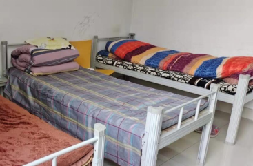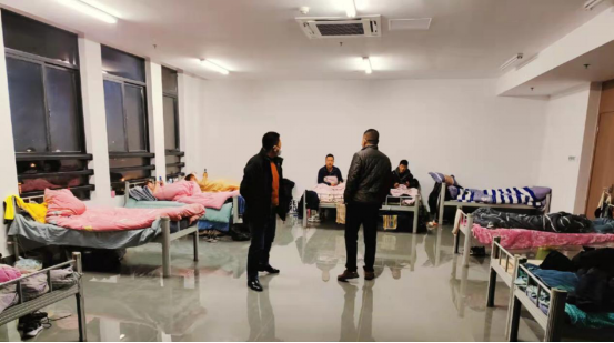 留校人员住宿环境及人员进入宿舍测温现场图
