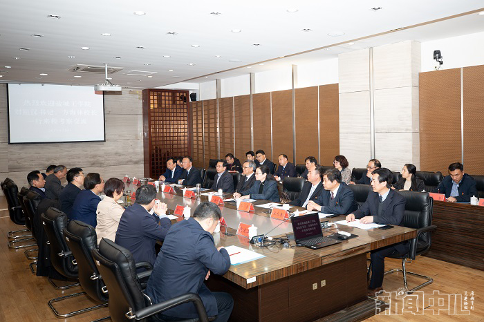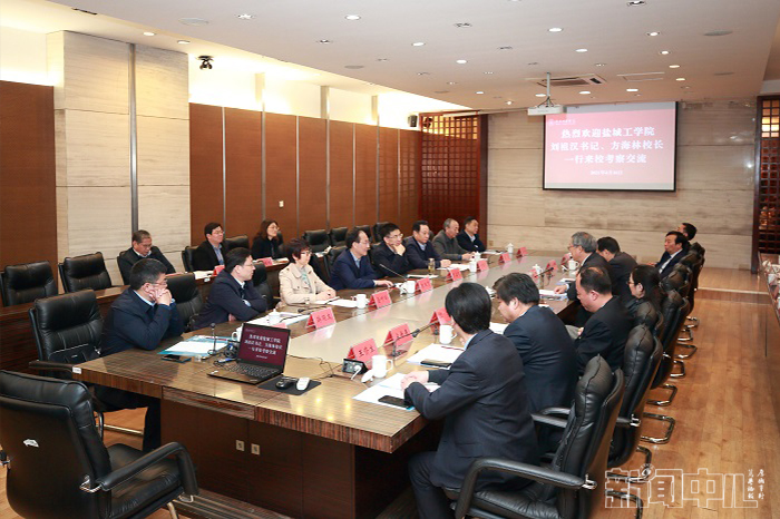 刘祖汉交流了我校“十四五”期间的发展定位和发展重点,希望以此次调研为契机,不断加强两校交流合作,分享经验做法,共同探索出适合自身改革与事业发展的新路径。方海林介绍了我校充分发挥以工科为主特色,紧贴地方主导产业发展,深化与地方、行业融合发展,大力推进校地融合、产教融合、协同创新、协同育人的经验做法。