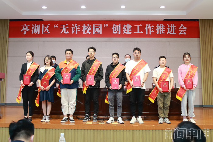 推进会上,杨洪锦就开展“无诈校园”创建工作的目的、意义,抓好创建的重点环节、关键措施,加强创建的警、校、宣的协同推进为“无诈校园”创建工作提出指导性意见。周晓琴通报了亭湖区电信网络诈骗情况。主席台领导还为被亭湖公安分局聘请的我校15名大学生“反诈宣传员”颁发聘书,土木工程学院学生会副主席张思婕同学作为“反诈宣传员”代表作表态发言。