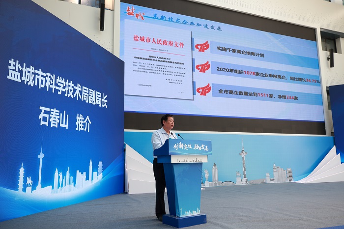 盐城市科技局副局长石春山介绍盐城产业及科技发展情况