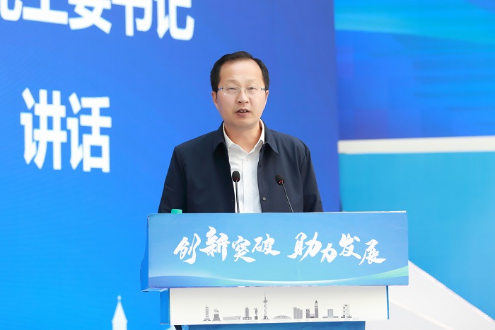 盐南高新区党工委书记高尚德介绍盐南高新区的情况及科技发展现状