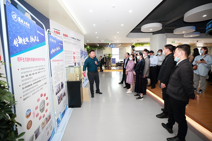 会后,参会人员到西伏河产学研协同创新中心集中参观了我校近年来合作研发的科技成果实物和展板,秸秆生态建筑板材、智能光纤传感系统、便携式BOD-Q水质测定仪等展品引起了广泛的关注,现场气氛热烈,对接成效明显,多家企业与我校各研究所达成初步合作意向。
