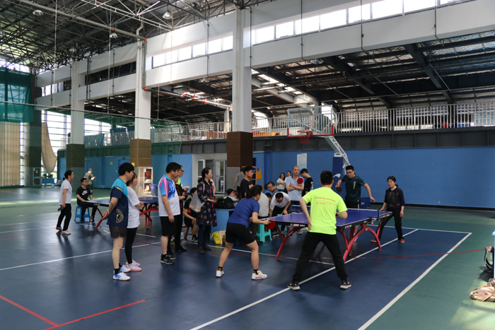 5月29日,我校第九届教职工乒乓球赛在学校南校区风雨操场举行。校党委副书记薛浩,副校长邵荣、宋长春参加活动。薛浩宣布比赛开幕,校工会主席谢毅敏致开幕词,体育教学部党总支书记秦明胜主持开幕式。全校26个分工会代表队200多人参加比赛。