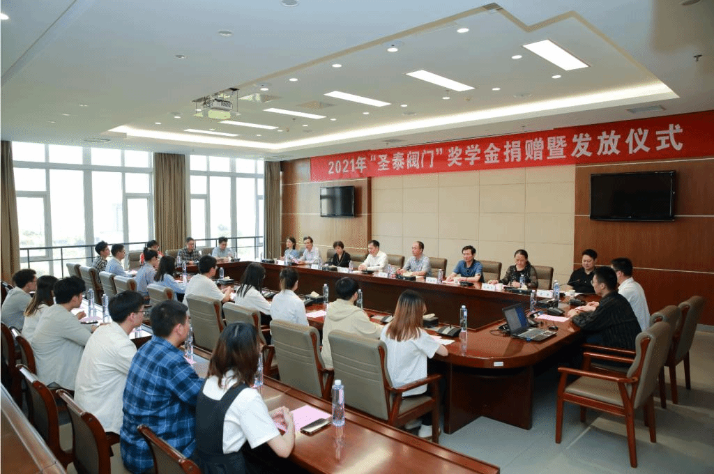 6月4日下午,2021年“圣泰阀门”奖学金颁奖仪式在南校区行政楼930会议室举行。副校长邵荣,江苏圣泰阀门有限公司董事长、总经理严涛,副总经理杨琳,我校校友工作办、学生处、财务处、招投标办等负责同志、师生代表参加。学生处处长徐新华主持本次活动。