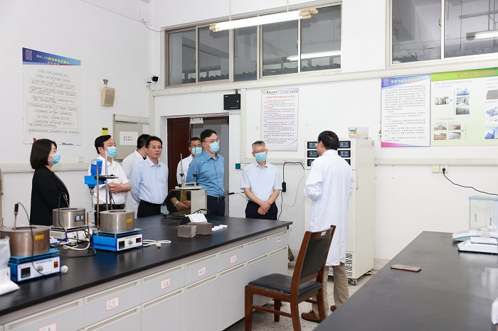 5月27日上午,省科技厅二级巡视员景茂、科研机构处四级调研员范宜,盐城市人民政府副秘书长颜彦,盐城市科技局局长韦向东、副局长姜浩然等一行赴我校新型环保重点实验室进行参观考察。党委书记刘祖汉主持座谈会。党委常委、副校长王路明,盐城市政协副主席、校科学技术处处长丁成,校产业技术研究院院长张勤芳等参加。