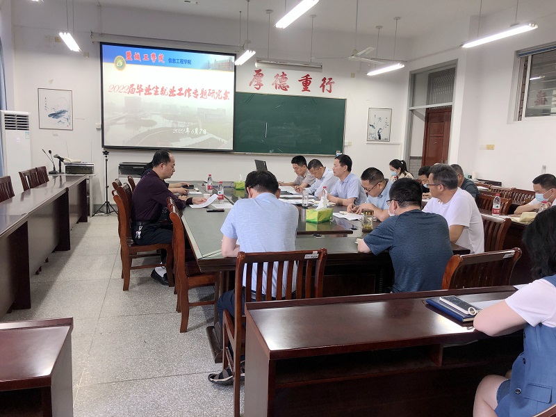 6月7日下午,信息学院在南校区怀德楼B410会议室召开2022届毕业生就业工作专题研究会,校党委常委、副校长邵荣出席并作重要指导,党委学工部、学生处、招生与就业指导处处长徐新华参加活动。信息学院院长王如刚及学院领导班子成员、各专业系主任、学工办负责人、毕业班辅导员参加会议。会议由信息学院党委书记王爱军主持。