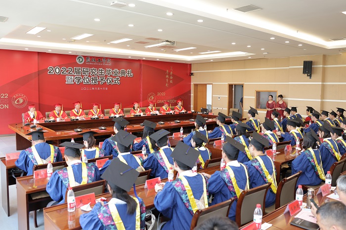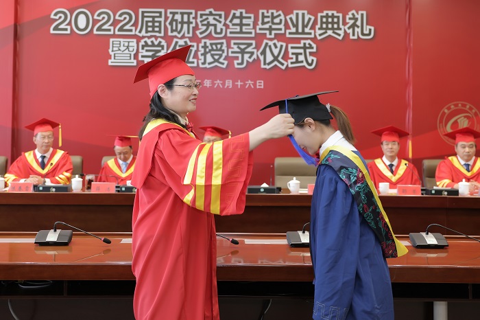 毕业典礼上,薛浩宣读《关于表彰2022届优秀毕业研究生的决定》。邵荣宣读《关于授予邹超等64名2022届研究生硕士学位的决定》。全体校领导为“优秀毕业研究生”获得者颁发荣誉证书。